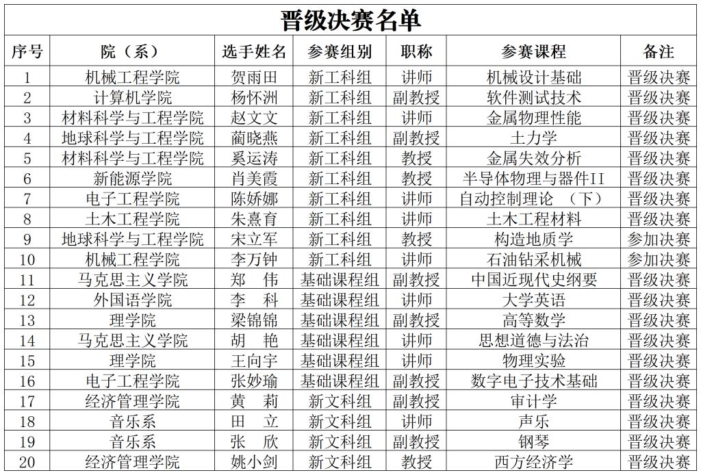 根据《陕西省教育厅办公室关于开展第五届陕西本科高校教师教学创新大赛的通知》(陕教高办[2023]27号)文件精神和《西安石油大学关于开展第四届教师教学创新大赛的通知》具体安排,经个人申请、院(系)初赛、资格审查、校级复赛等环节,现将复赛结果予以公示(名单见附件)。