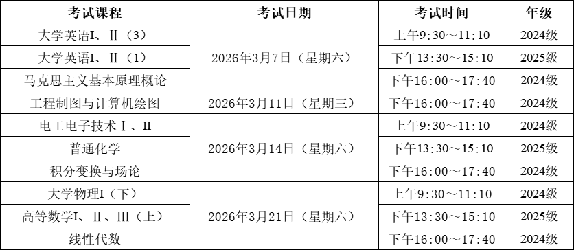 3.各院(系)应结合2025-2026学年第二学期教学工作规律,合理安排毕业年级涉及的课程补考,以确保后续工作顺利开展。
